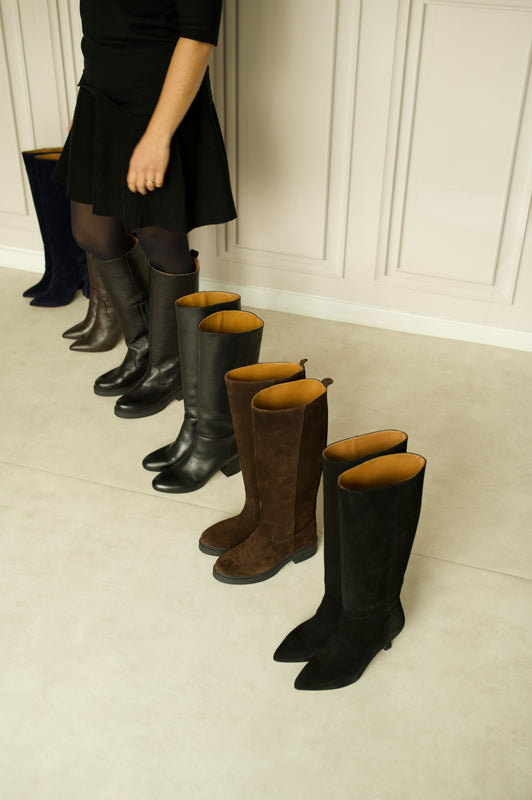 Dalia suede, black - wide calf boots, large fit boots, calf fitting boots, narrow calf boots